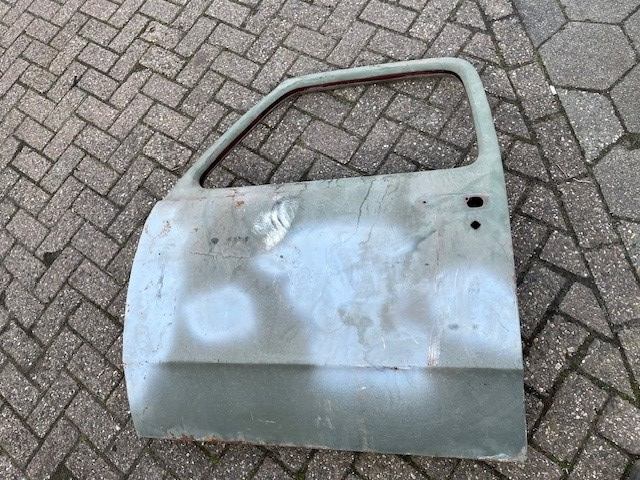 Deze deur heeft nieuw plaatwerk aan de onderzijde, dit moet nog gedeeltelijk afgelast worden maar is nu dus wel hard.